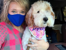 We always tell people that Dottie was destined to be a service dog - she has a heart of pure gold! She loves everyone she meets and has never met a stranger. Dottie’s coat is second to none - it’s non-shedding, easy to maintain, and has an amazing velvety plush texture! Dottie is highly intelligent, and her desire to please makes her a dream to train. Dottie absolutely adores Dustin and Cason, and never lets them out of her sight. She produces dreamy little tuxedo and abstract babies with her amazing coat and awesome temperaments.